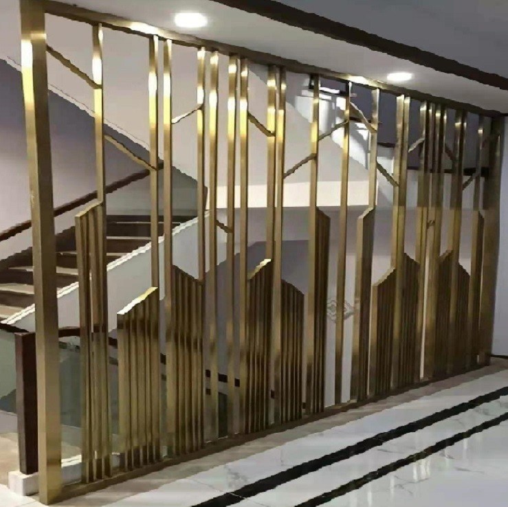 هذا القسم المعدني للغرفة مثالي لفصل المناطق في منزلك أو مكتبك أو مطعمك. إنها طريقة رائعة لتقسيم المساحات مع إضافة الأسلوب والأناقة.لوحة الفصل المعدن مصنوعة من الفولاذ المقاوم للصدأ عالية الجودة، مما يجعله متينًا ودائمًا. إنه يخلق مظهرًا عصريًا وأنيقًا مثاليًا لأي غرفة. من السهل تثبيت قسم الحائط المعدني ويمكن تخصيصه ليتلاءم مع أي مساحة.انها مثالية لإضافة لمسة من الرفاهية إلى أي غرفة وهي طريقة رائعة لخلق مساحة خاصة.