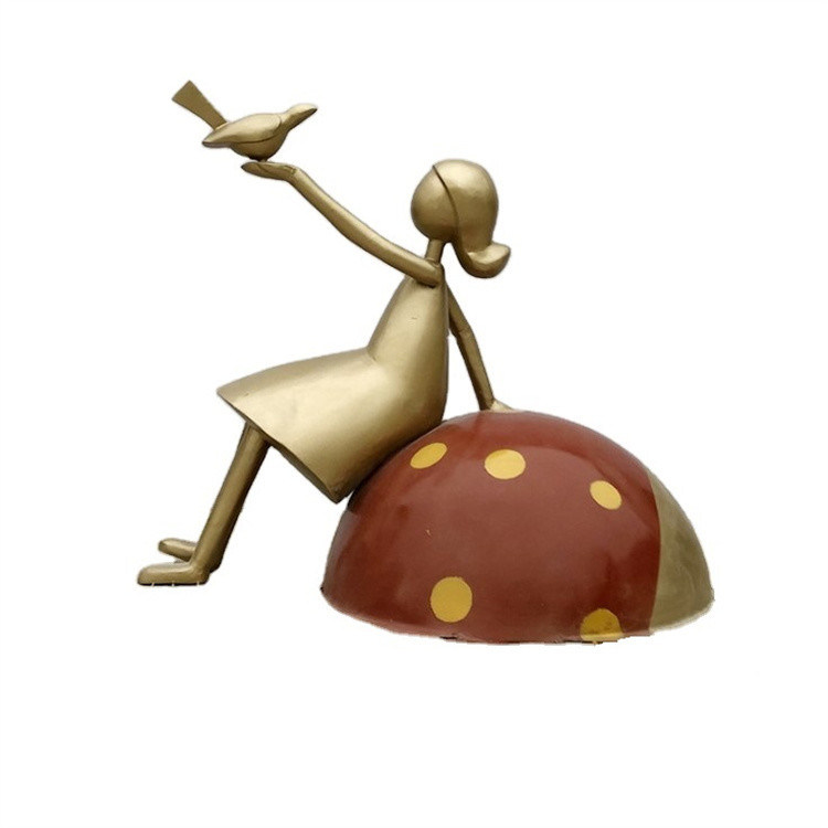 बगीचे के लिए कीड़ों के साथ टिकाऊ कांस्य लड़की सजावटी धातु की मूर्ति