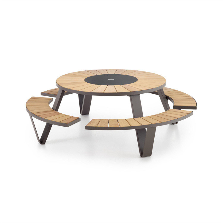 Metal Wooden Table Bench Seats Modern Patio Street Round Chair Table