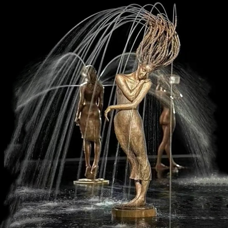 The Bronze Woman Fountain Statue is a stunning piece of art that combines the elegance of a traditional fountain with the modern touch of bronze. The modern design of this sculpture is sure to catch the eye of anyone who sees it. The use of bronze creates a sleek and contemporary look that is both elegant and durable. The intricate details of the sculpture add a touch of sophistication and make it a one-of-a-kind piece. The gentle flow of water adds a calming and soothing element to any outdoor space, making it the perfect addition to a garden or park.